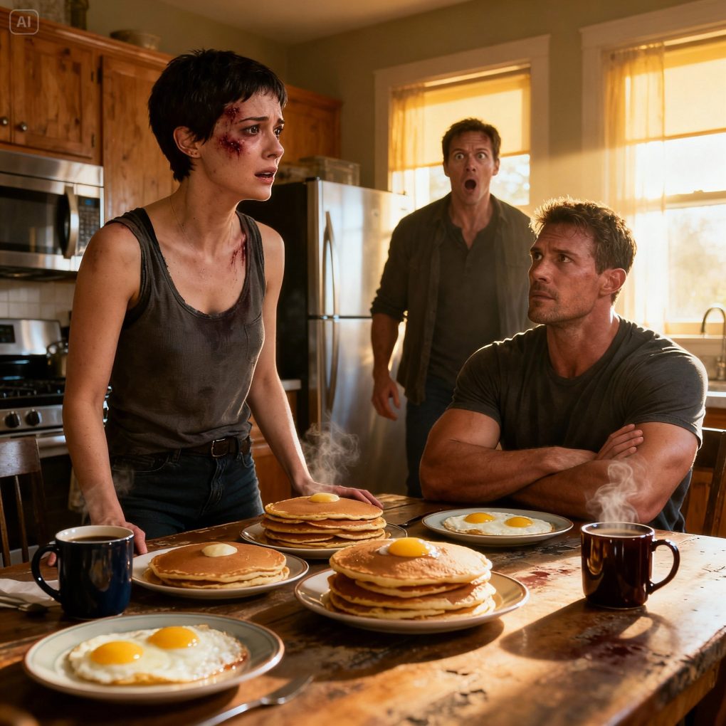 When Daniel finally woke up, stretching in that lazy, entitled way he always had after a night where he believed he had reestablished “control,” he followed the warm smell of pancakes into the dining room. His eyes swept over the table: stacked pancakes, eggs cooked perfectly, fresh fruit, even coffee made exactly how he liked it.