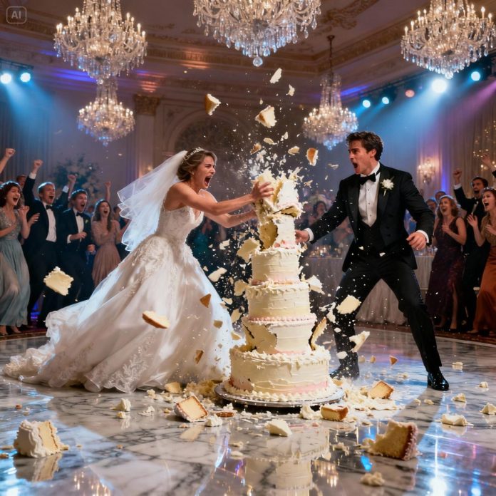 With a surge of adrenaline, I slammed the cake cart hard. The three-tiered cake toppled to the floor, frosting and delicate sugar flowers exploding across the marble tiles. Gasps and screams filled the room. Champagne flutes rattled, and the string quartet froze mid-note.