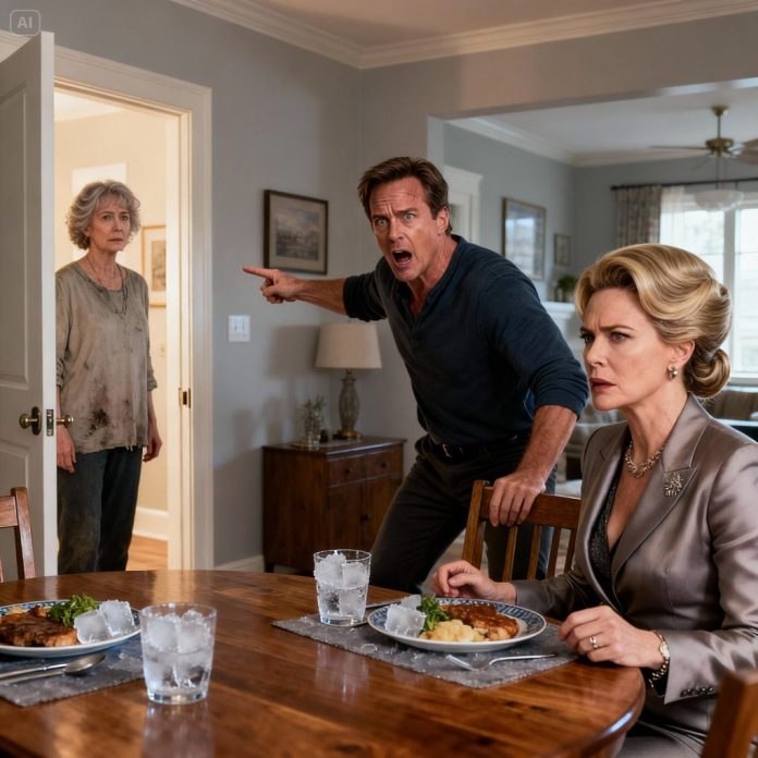 Then Evelyn noticed Caroline’s father, Richard. He had barely glanced at her—just one quick look. But that single moment changed everything. His face drained of color. His eyes widened. And suddenly, with a sharp scrape of his chair, he stood up so quickly the table shook.