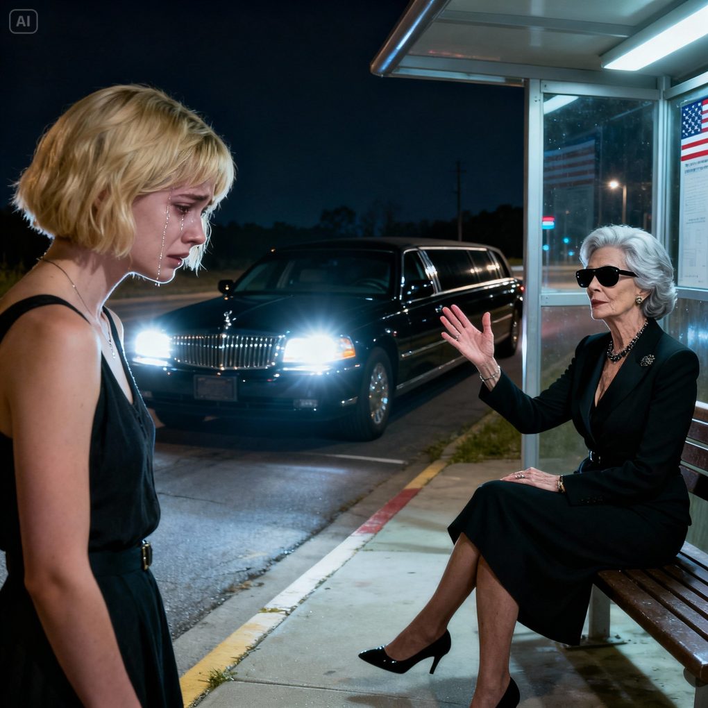 After our argument, my husband threw me out of the house and left me at a deserted bus stop outside the city with not a single cent. I was nearly hopeless, preparing to walk more than twenty-five kilometers back. At that moment, an elderly blind woman lying on the bench whispered, “Pretend to be my granddaughter. My private driver will be here soon.” I froze. She gave a faint, proud smile and said, “And watch how your husband regrets leaving his wife beside the richest woman in the city.” Just a few minutes later, a limousine pulled up—and from that moment on, my life changed completely.