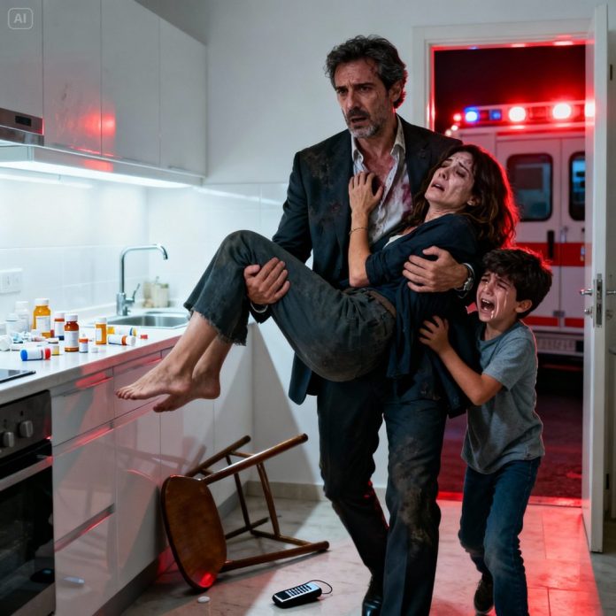 La ambulancia tardó siete minutos, pero para Alejandro fueron horas. Cuando los paramédicos entraron, él seguía sosteniendo la mano de Lucía mientras Dieguito se aferraba a su chaqueta.