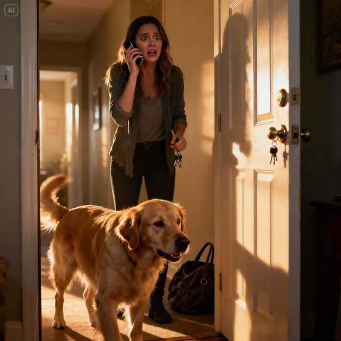 I was rushing out the door, already late for work, when my dog, Bruno—usually the calmest, sweetest Golden Retriever—suddenly planted himself in front of the doorway. His body stiffened, fur raised, teeth bared. He growled—a deep, unfamiliar warning sound that made something in my chest tighten.