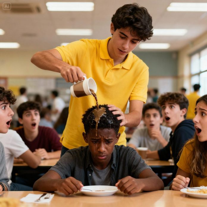 La cafetería quedó en silencio. Algunos estudiantes observaron la escena con incomodidad, otros con sorpresa. Para Rodrigo, aquello era solo una “broma”, pero para Samuel no era la primera vez que enfrentaba una situación así.