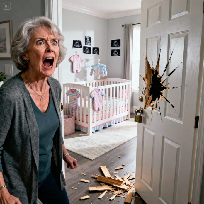 “Why is this door locked?!” my mother-in-law, Margaret, shouted as she rattled the handle of the spare room in my apartment. I watched everything live through the small security camera I had mounted above the bookshelf, my phone balanced in my palm as I stood in the kitchen of my office, pretending to be on a coffee break.