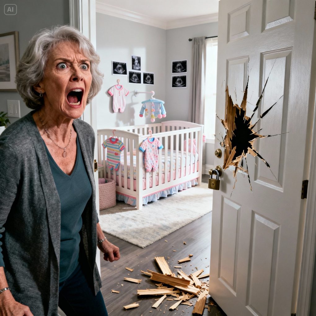 On camera, I watched her step back, mutter something about “ridiculous behavior,” then ram her shoulder into the door like she was reenacting a crime-scene documentary. The third push did it. The door snapped open, and she stumbled forward, arms flailing until she hit the carpet with a loud, indignant grunt.