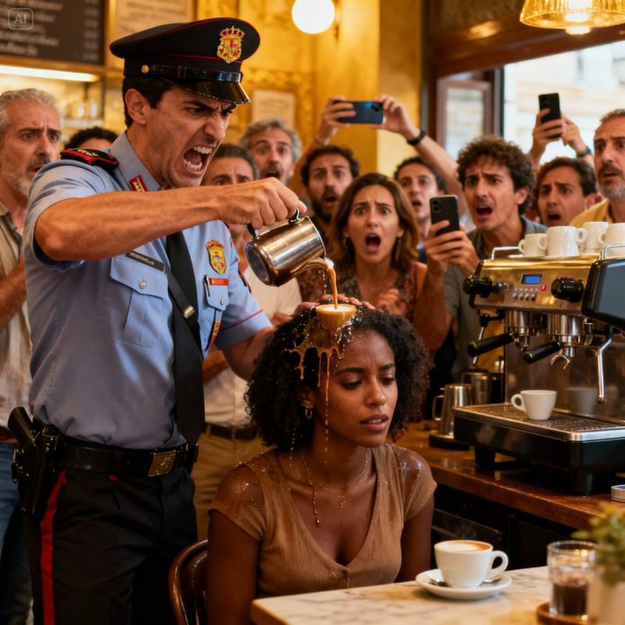El café “La Esquina de Madrid” solía ser un refugio silencioso a media tarde. Aquel martes, sin embargo, el ambiente se tensó en cuanto el agente Roberto Salgado, un policía conocido por su temperamento explosivo, entró con pasos pesados. En una mesa del fondo, sentada sola, se encontraba María Antúnez, una mujer afrodescendiente de unos cincuenta años, vestida con un traje sencillo y leyendo unos documentos con total serenidad.
