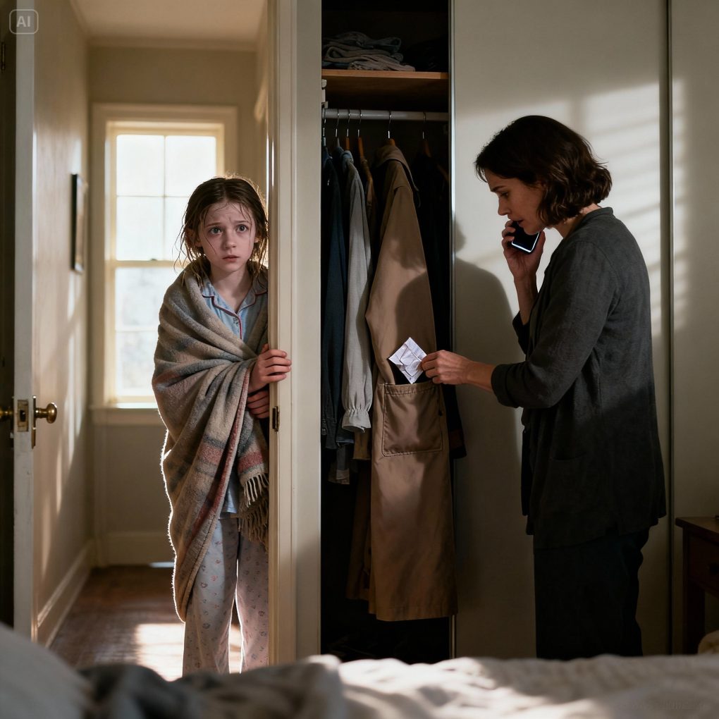 “Mom, I have a fever… can I stay home today?” she whispered, and her mother agreed without a second thought. But by noon, the house wasn’t as quiet as it should’ve been. A key turned in the lock—slow, careful, like whoever entered didn’t want to be seen. From behind her bedroom door, the girl watched her aunt slip something into her mother’s coat pocket… then casually step away and whisper into her phone, “It’s done. Tonight she’ll call the police. That fool won’t suspect a thing.”