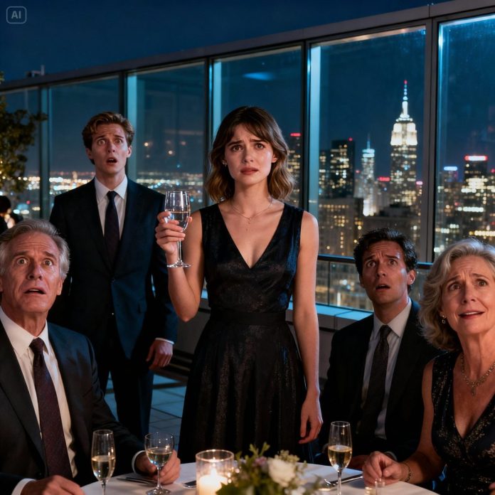 She placed her glass on the nearest table, turned, and walked toward the exit without looking back. People parted instinctively to make room for her. Her mother called out her name in a choked whisper, but Olivia didn’t stop. She stepped into the elevator, the doors closing slowly as the stunned silence from the party pressed in behind her.