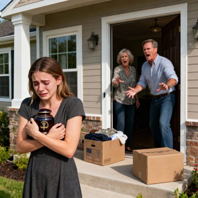 The morning after my soldier husband’s funeral, I came home to find my in-laws changing the locks. His father coldly declared, “Only blood family is allowed. Your time here is over.” I stood motionless as they packed my belongings into boxes, then looked him straight in the eye and said, “You forgot one thing…”