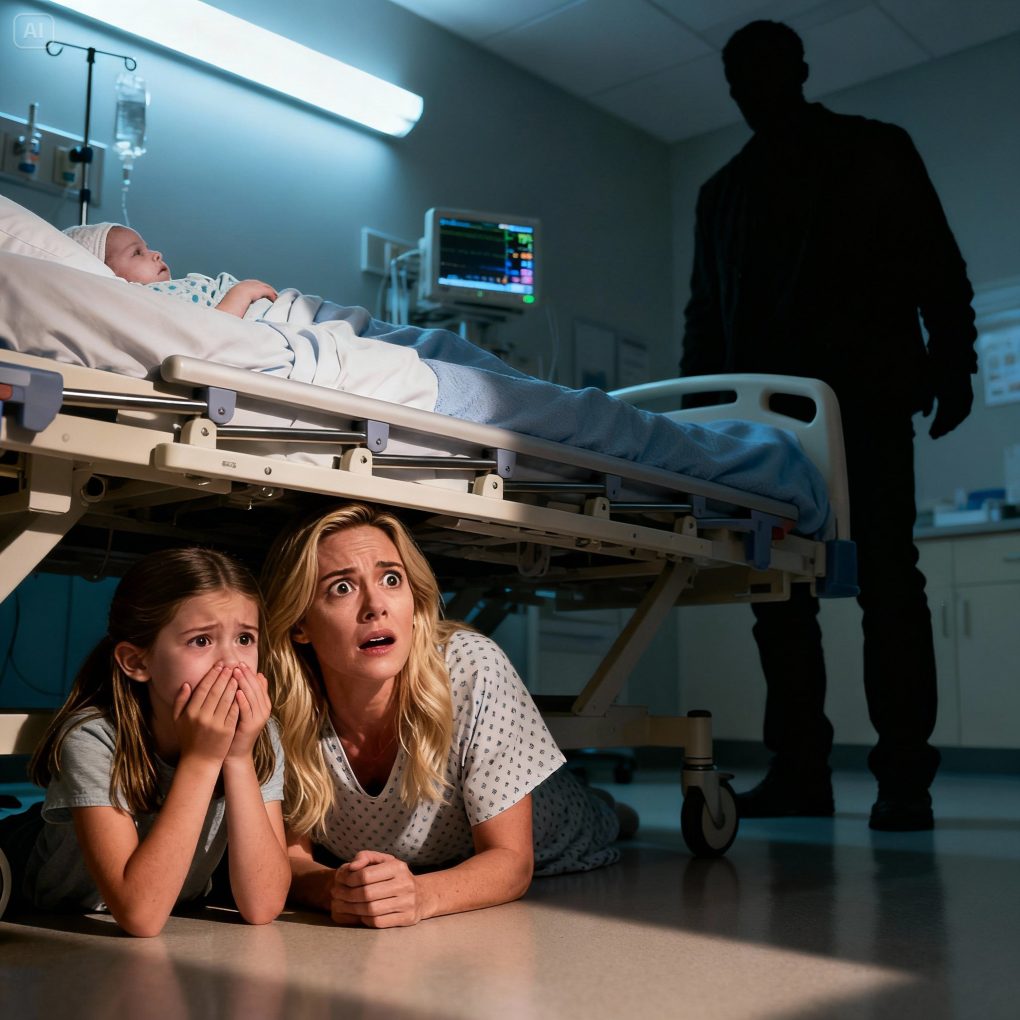 I had just given birth when my eight-year-old daughter rushed into the hospital room, her eyes wide with alarm. She pulled the curtains shut and whispered urgently into my ear: “Mom… get under the bed. Right now.” My heart tightened, but I obeyed. We pressed ourselves together under the bed, barely daring to breathe. Then heavy footsteps entered the room. As I started to peek out, she gently placed her hand over my mouth—fear shining in her eyes like I’d never seen before. And then…