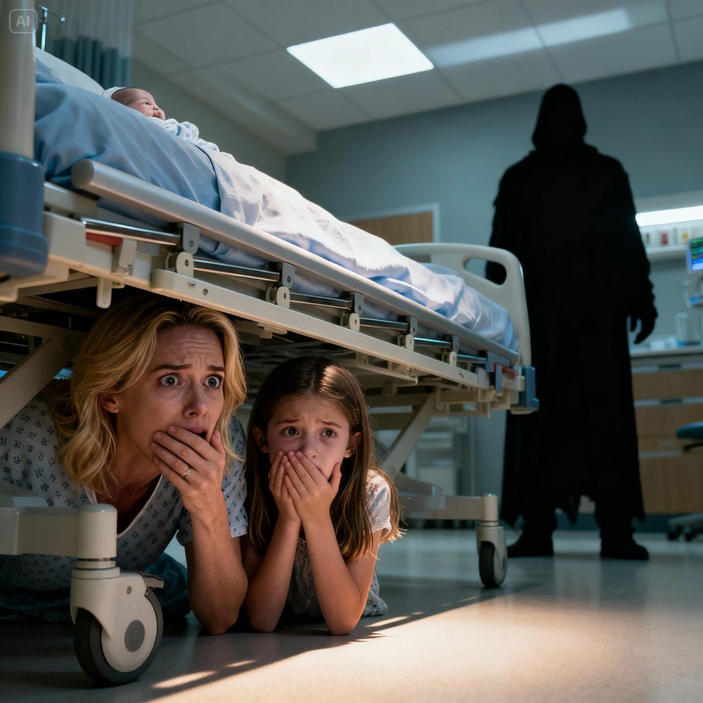 I had just given birth when my eight-year-old daughter ran into the hospital room, her eyes wide and alert. She closed the curtains, then whispered right against my ear: “Mom… get under the bed. Right now.” My heart clenched, but I did as she said. The two of us lay close together beneath the bed, trying to keep our breaths as quiet as possible. Suddenly, heavy footsteps entered the room. Just as I tried to look out, she gently covered my mouth—her eyes filled with a fear I had never seen before. And then…