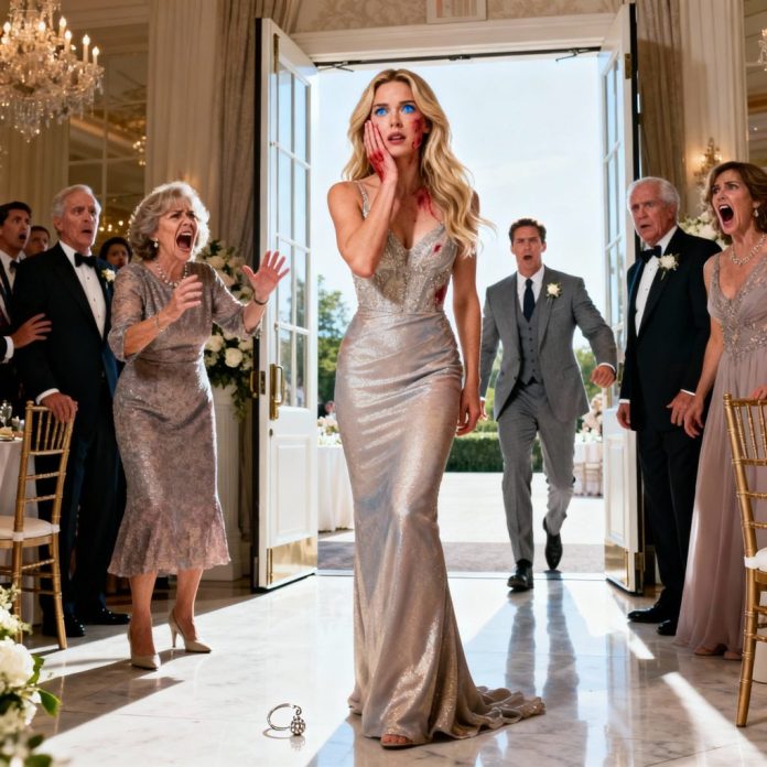 The slap landed before I even registered her hand moving. My head snapped to the side, and something small flew across the floor — my earring. Gasps echoed. Emily froze at the edge of the dance floor, horrified.
