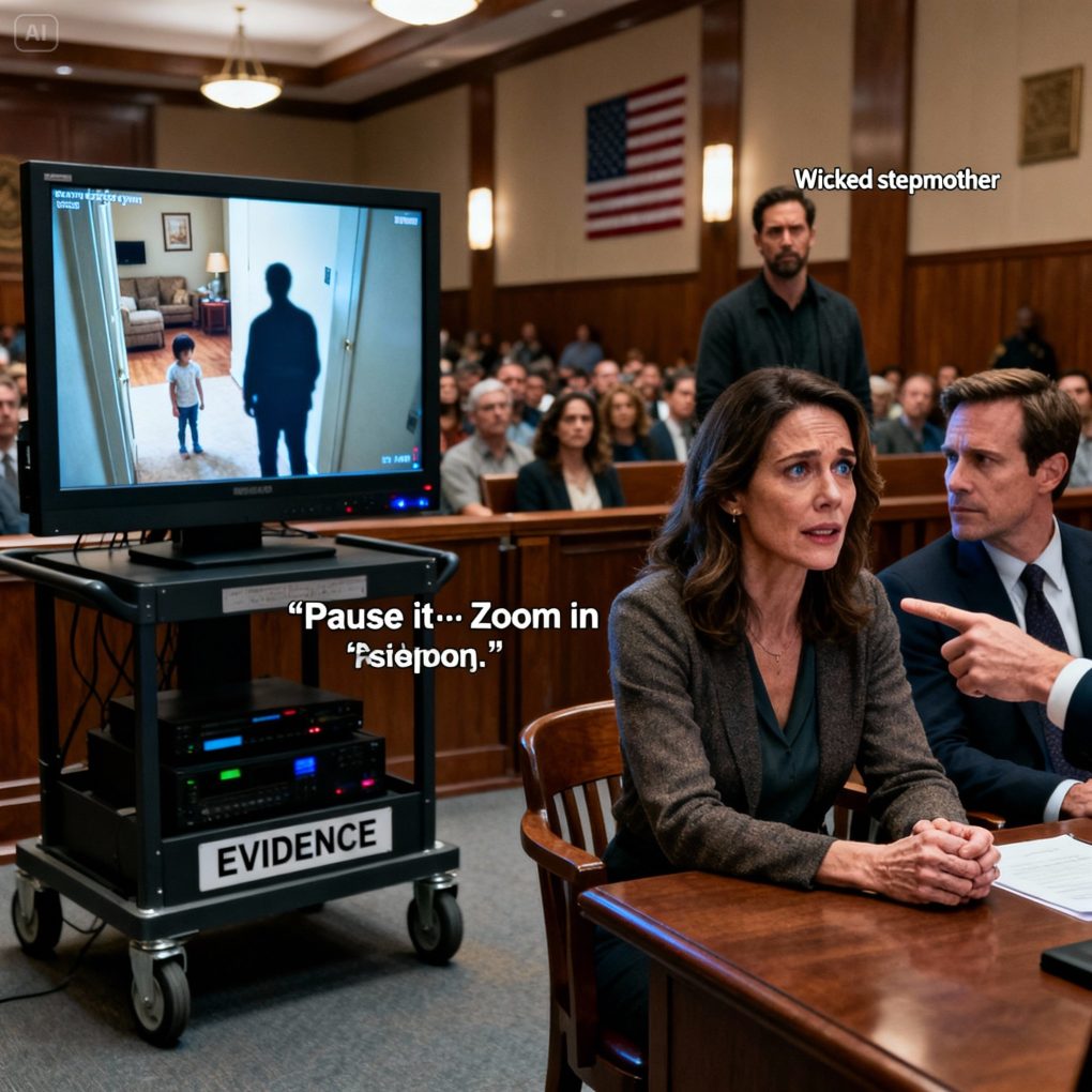 They called me a monster in the middle of the courthouse. “Wicked stepmother,” the influencer hissed, pointing at me like I’d poisoned the whole family. Even my husband wouldn’t meet my eyes. Then the bailiff rolled in the evidence—security footage the police “couldn’t recover.” The screen flickered… and my blood turned to ice. “Pause it,” I whispered. “Zoom in.” Because the person hurting that child wasn’t me—and he was standing right behind us.