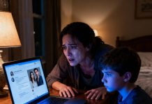 Yellow tape stretched across the hallway, trembling in the air-conditioning like a warning. Two officers stood guard. A cluster of staff waited behind them, faces pale. Parents hovered at the far end, crying quietly, being guided away by security.