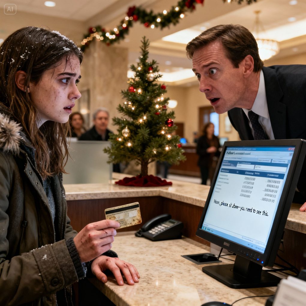 My parents kicked me out on Christmas with nothing—not even letting me take a single thing—saying, “You can’t do anything on your own.” Desperate, I went to the bank to use the old card my grandfather left me. The bank manager turned pale and whispered, “Ma’am, please sit down—you need to see this.” I was shocked by what appeared on the screen…