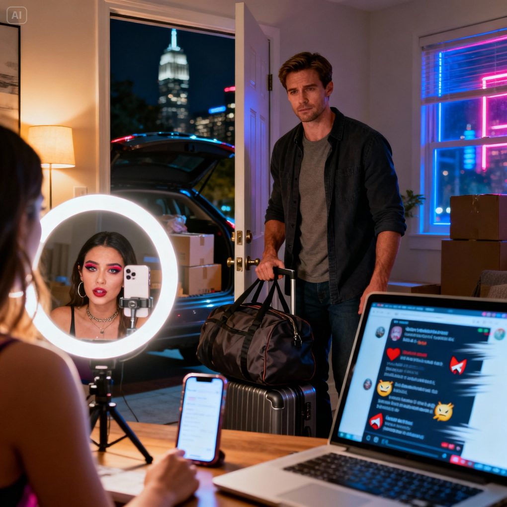 I could hear her voice from the hallway, bright and flirty, performing into her phone. I’d come home early because she’d asked me to “be quiet” for the stream, which usually meant she was doing a Q&A or a try-on haul.