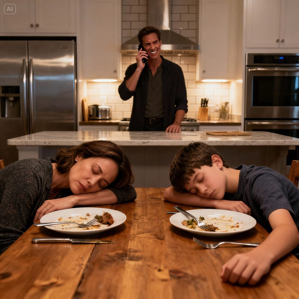 My husband cooked dinner, and right after my son and I ate, we collapsed. Pretending to be unconscious, I heard him on the phone saying, “It’s done… they’ll both be gone soon.” After he left the room, I whispered to my son, “Don’t move yet…” What happened next was beyond anything I could have imagined…