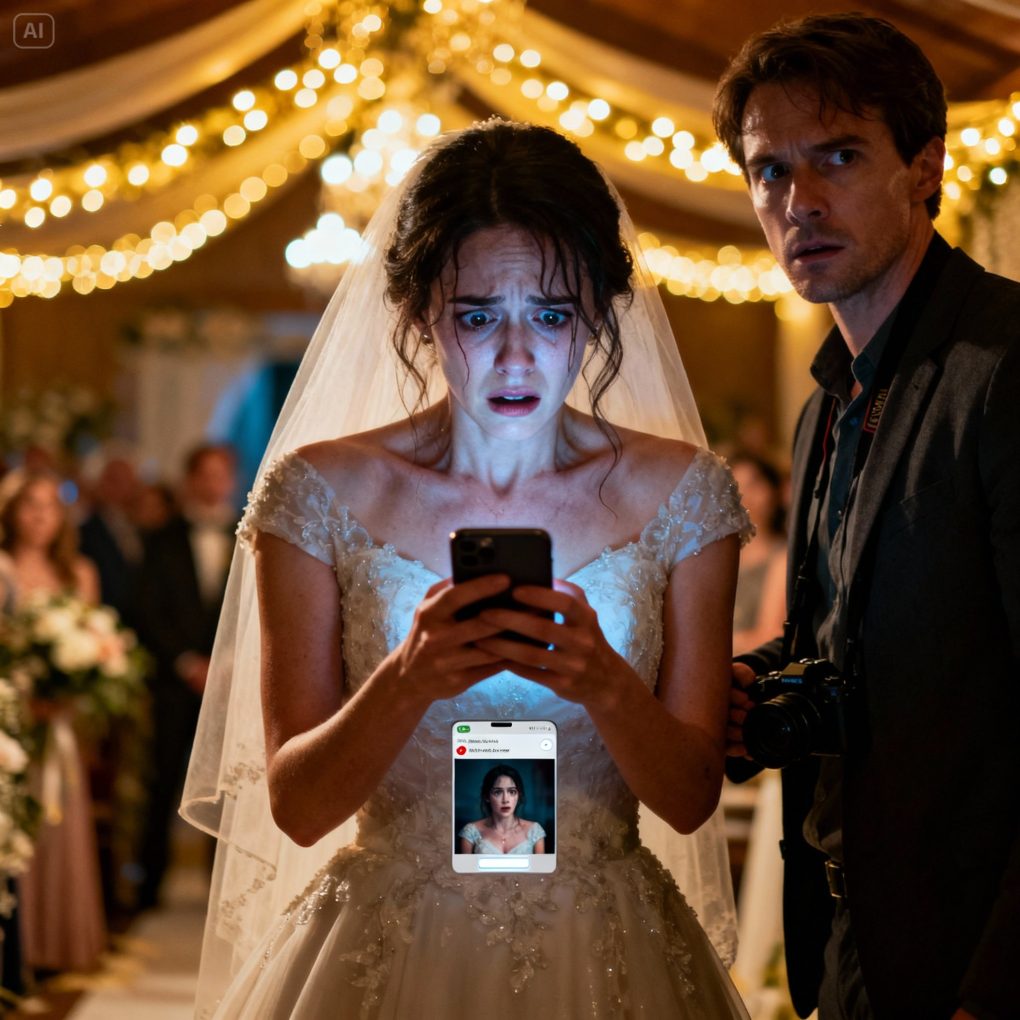 During my wedding, the photographer suddenly pulled me aside and whispered, ‘Check your phone. Don’t react.’ Confused, I glanced down and saw a message from an unknown number — attached was a photo of me taken just seconds earlier. My heart pounded as I opened it. The words beneath the picture made my stomach drop… and in that moment, I realized my perfect wedding was about to unravel.