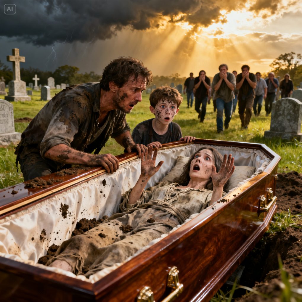 I had laid my wife to rest not even an hour ago when my seven-year-old son tugged at my sleeve, trembling as he whispered, “Dad… Mom is calling me from inside the coffin.” I thought he was drowning in grief, but the terror in his eyes made my heart clench. I don’t know why, but I heard myself say, “Dig it up.” When the coffin lid finally creaked open, everyone held their breath—because what we saw inside… changed everything.
