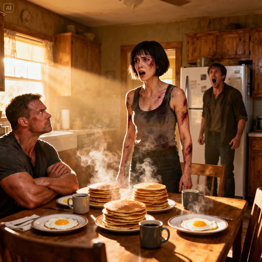 The next morning, he woke to the smell of warm pancakes drifting through the house. Sunlight spilled across the kitchen, onto a table filled with everything he loved—crispy bacon, scrambled eggs, fresh berries, a pot of coffee already brewed.