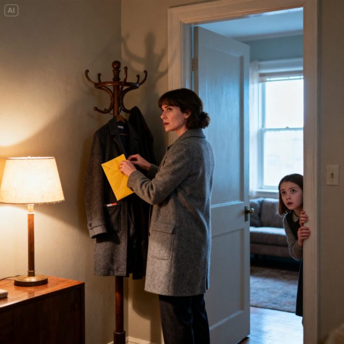 Caroline didn’t call out Lily’s name. She didn’t look around. Instead, she walked straight to the coat rack, pulled down Rachel’s work coat, and slipped something inside the inner pocket. Lily couldn’t see what it was, but Caroline handled it carefully, almost nervously.