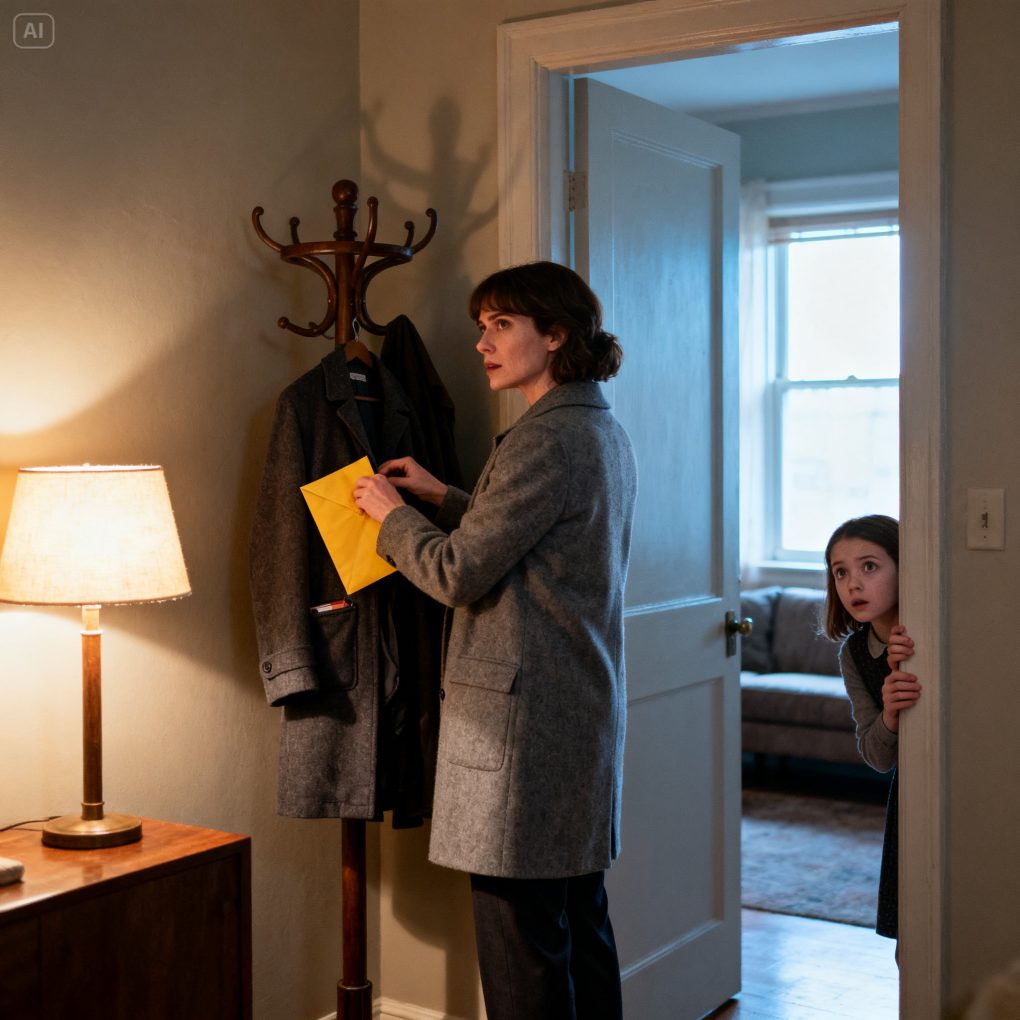 “Mom, I have a fever… can I stay home from school today?” the little girl asked. Her mother felt her forehead and allowed her to stay home. By noon, the girl heard a key turning in the lock. From her room, she saw her aunt walk in and secretly slip something into her mother’s coat pocket. Before leaving, her aunt spoke on the phone: “I’ve taken care of everything. Tonight the girl can call the police. That fool won’t suspect a thing.”