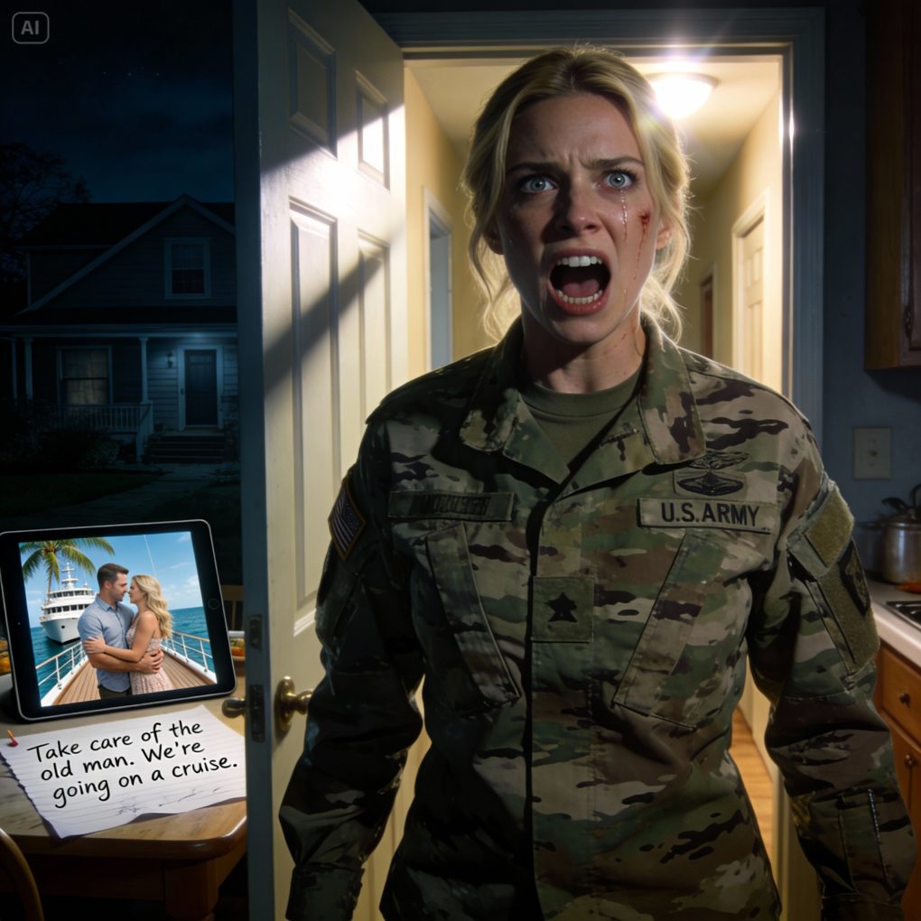 I came home after six months of training and found the house dark, cold like a morgue. When I opened the door, Victor looked at me, lips trembling and blue, whispering, “Jenna… they left Dad behind.” On the table lay a messy note: “You take care of the old man. We’re going on a cruise.” And on the iPad… were photos of my husband holding his mistress. In that moment, I knew: “Brady is no longer a husband. He’s a target.” And this… was only the beginning.