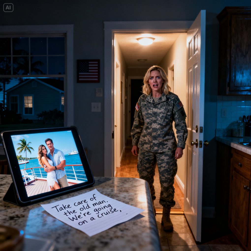 I returned after six months of training and found the house pitch-dark, cold like a morgue. When I opened the door, Victor looked up at me, lips blue, whispering, “Jenna… they abandoned Dad.” On the table was a scribbled note: “You handle the old man. We’re off on a cruise.” And on the iPad… were photos of my husband wrapped around his mistress. That was the moment I realized: “Brady isn’t a husband anymore. He’s a target.” And this… was just the beginning.