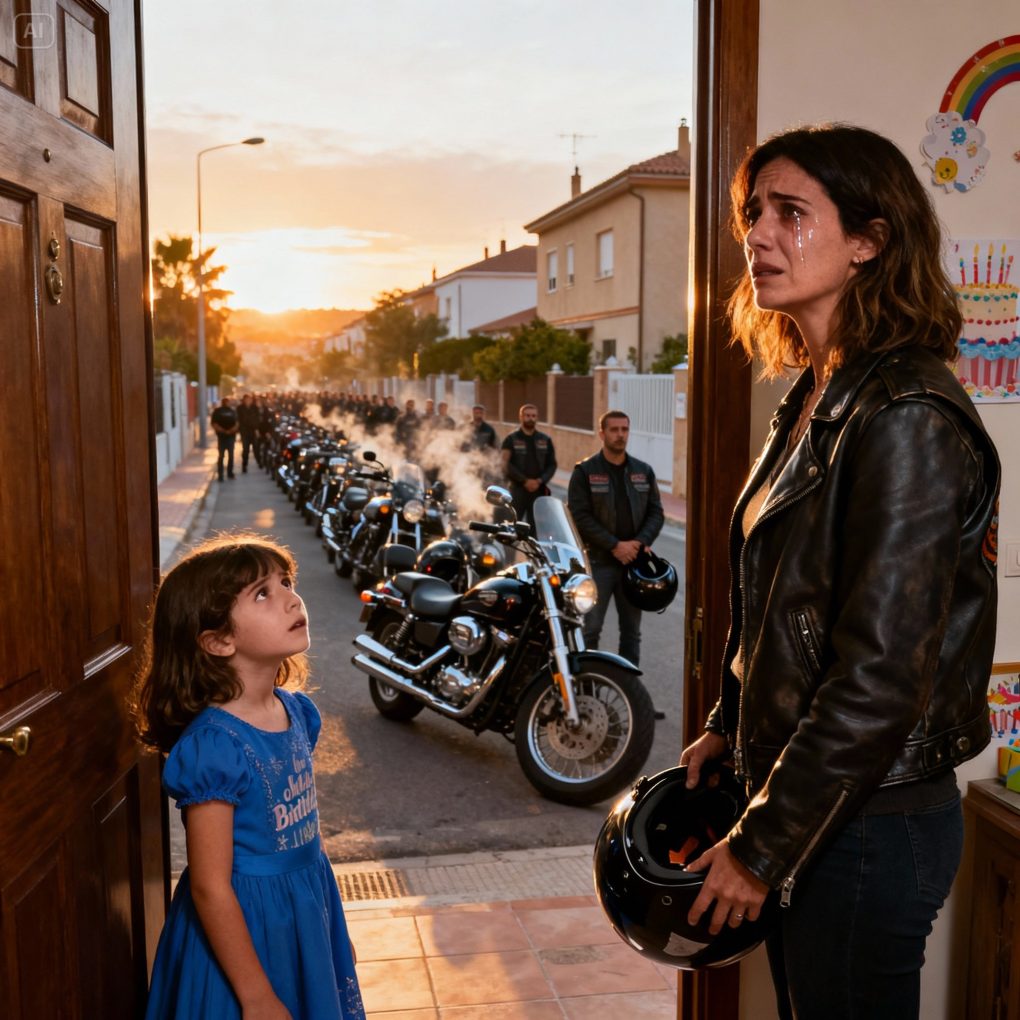 Nadie fue a la fiesta de cumpleaños de mi hija. Mi teléfono vibró con un mensaje que me partió el corazón: “¿Quién iría a una fiesta para una niña sin papá?”. Sonreí a pesar del dolor para que no lo viera. Pero justo cuando estábamos a punto de soplar las velas, el suelo empezó a temblar. Un rugido de motores llenó la calle: una fila de motos se detenía afuera. Mi hija abrió mucho los ojos, con la voz temblorosa: “Mamá… esos son los amigos de papá. Esa es la carta que les envié…”