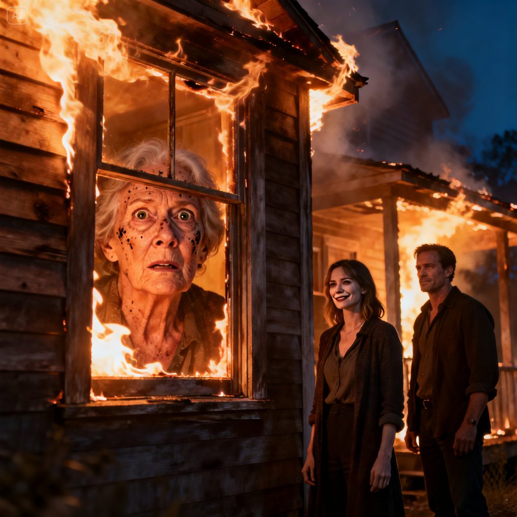 “Hope you like fire,” my son-in-law whispered as he locked me inside the burning cabin. My daughter only smiled coldly. They believed my five-billion-dollar fortune was already theirs. But when they returned home to celebrate, I was sitting there waiting for them—holding something they never expected, and carrying a truth that would destroy everything they thought they’d won.