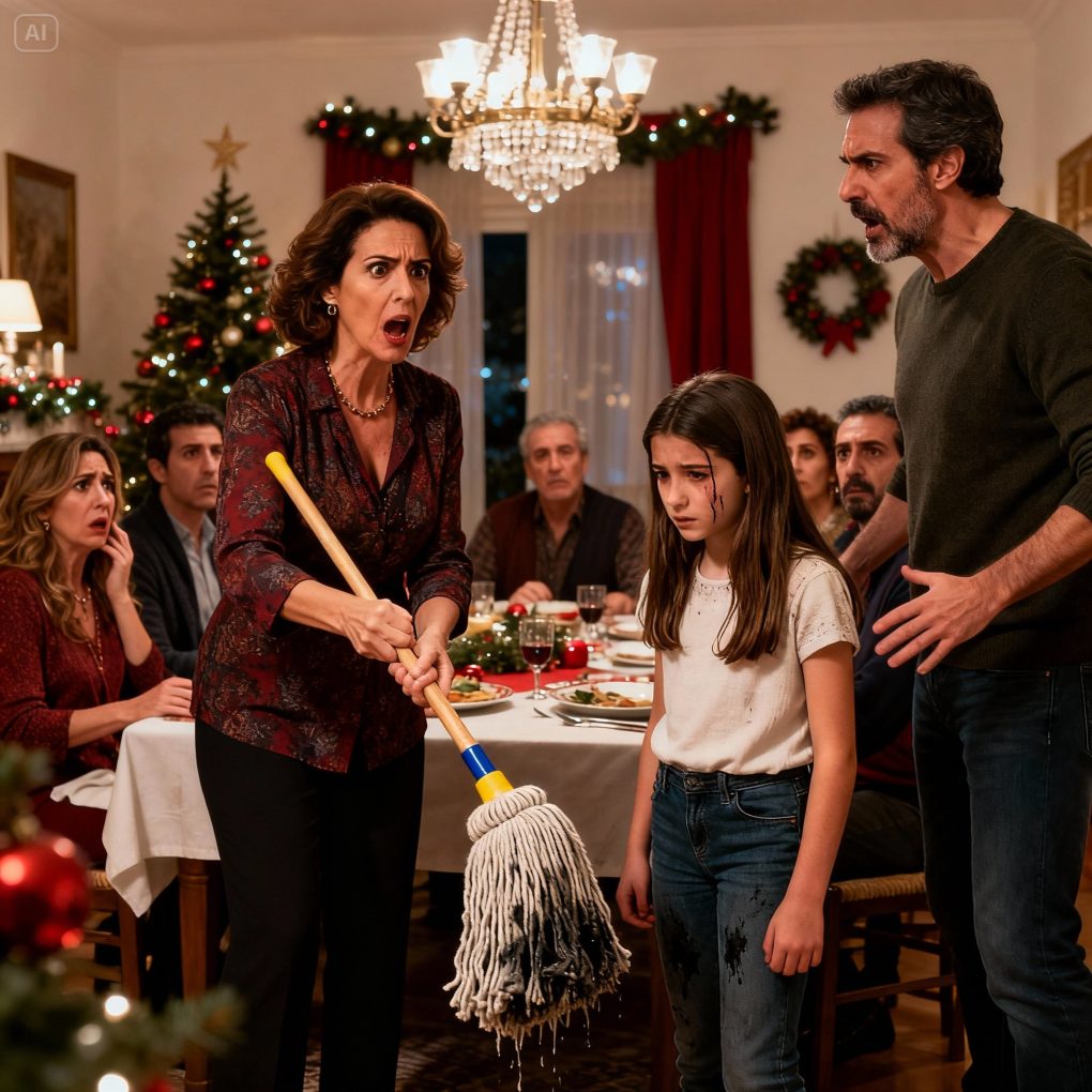 En Nochebuena, mi madre le dio a mi hija un trapeador sucio delante de veinte invitados y mi esposa. “Aquí comen gratis, así que empiecen a limpiar”, dijo con una sonrisa triunfal. La hija de mi hermana intervino: “Eso es justo lo que te mereces, Sophia”. Esa noche, hicimos las maletas y nos fuimos. Pero lo que hice al día siguiente puso a toda la familia patas arriba..