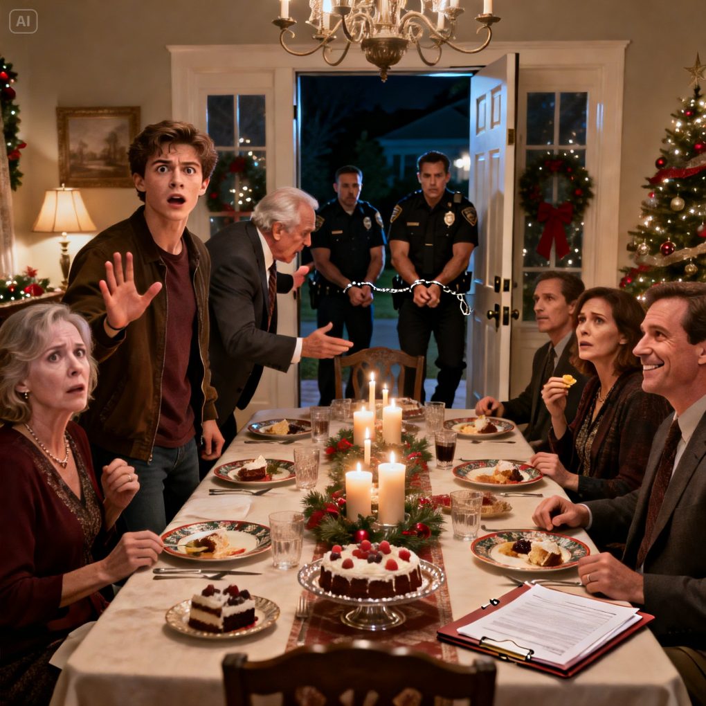My grandfather slammed the table at Christmas dinner and pointed at a stranger. “He stole our multi-million-dollar company!” The room erupted. I hadn’t even processed it when the man leaned in and whispered, “You’re the real owner.” My mom went pale. My dad forced a laugh. “Don’t make a scene…” But by the time dessert was served, the door swung open—cold handcuffs clicking shut. And that’s when I learned… they’d forged my signature to sell a future I didn’t even know I owned.