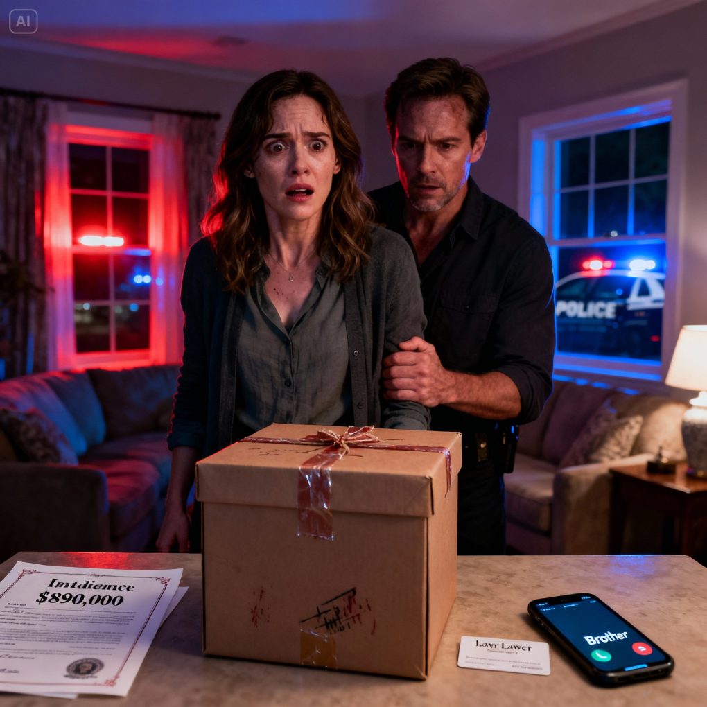 After I inherited $890,000, my brother sent me a gift box. My husband looked at it and said: “Don’t open it. Can’t you see?” I looked closer… And froze in horror. 10 minutes later, police arrived in horror.