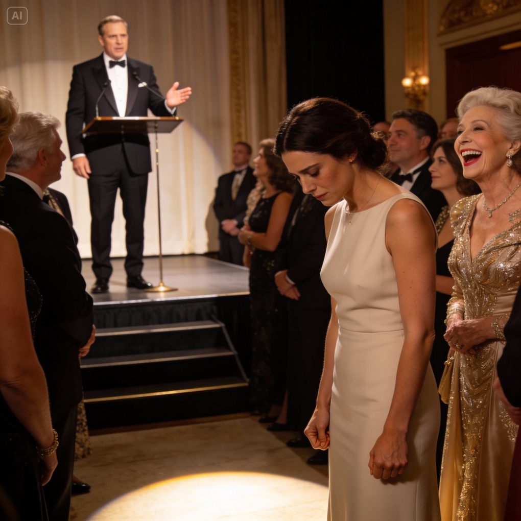 I stood beside my husband, Evan, under the glow of chandeliers, surrounded by silk gowns and tailored suits. The charity gala was meant to feel elegant. Instead, it felt like a spotlight had been turned directly onto me.