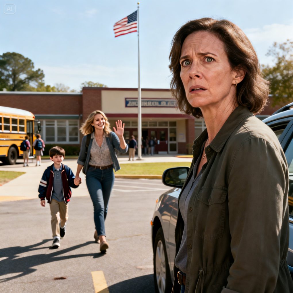 My pulse spiked. I looked up, confused and scared. The woman met my eyes—steady, serious—and subtly mouthed three words.