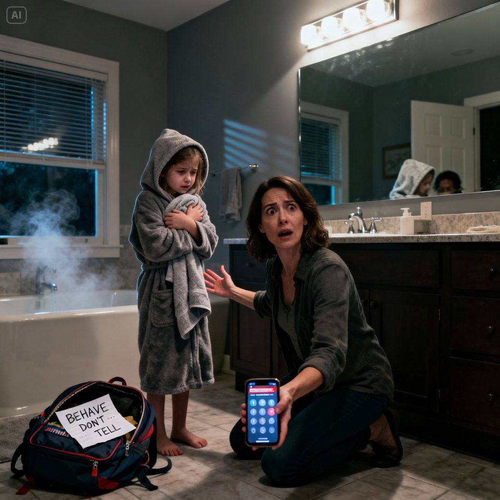 Emma’s eyes darted away. She hugged herself tightly. “Because… because bath time is when—” She stopped, lips trembling.