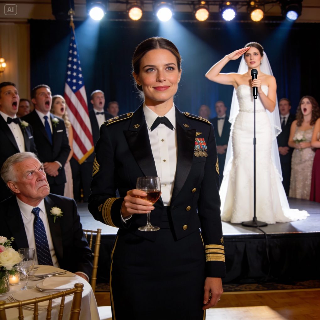 Sophia straightened, placed the microphone down for a moment, faced me fully—and gave a crisp, unmistakable military salute.