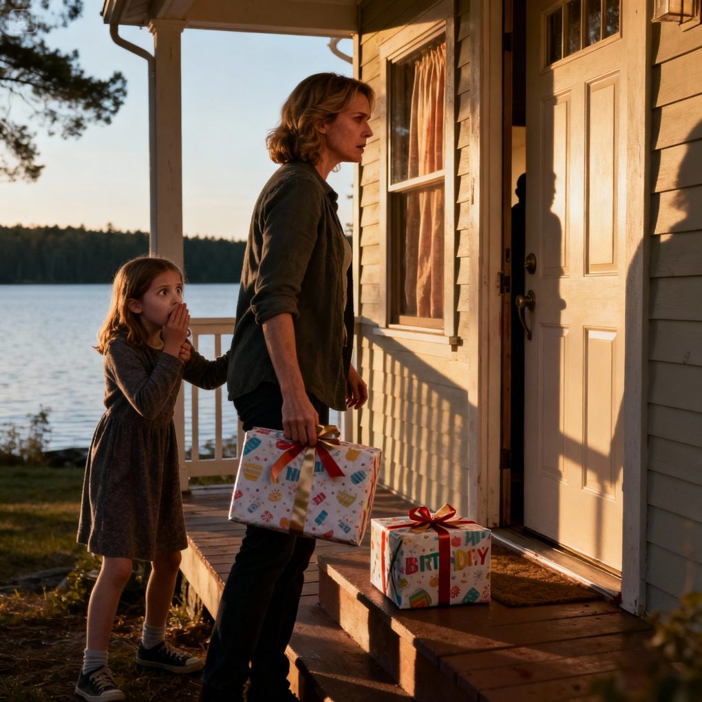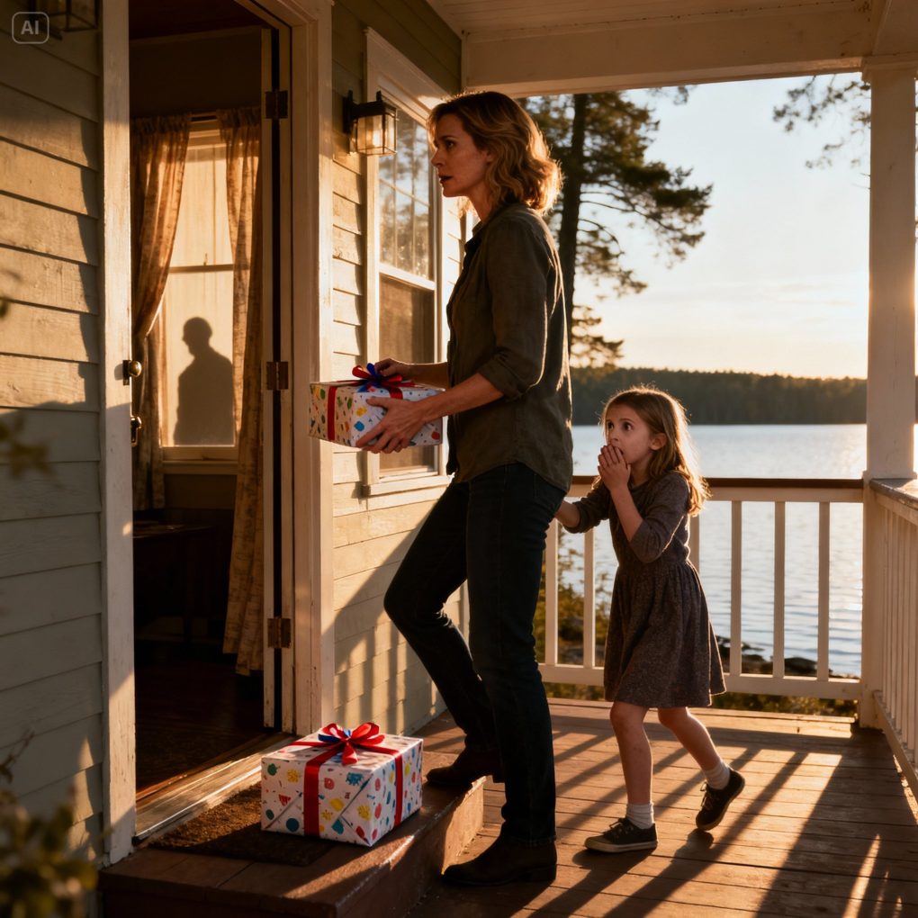 I set the gift gently on the porch next to the door, as if that was all we’d come for. I took Lily’s hand and walked back to the car without looking at the windows again.