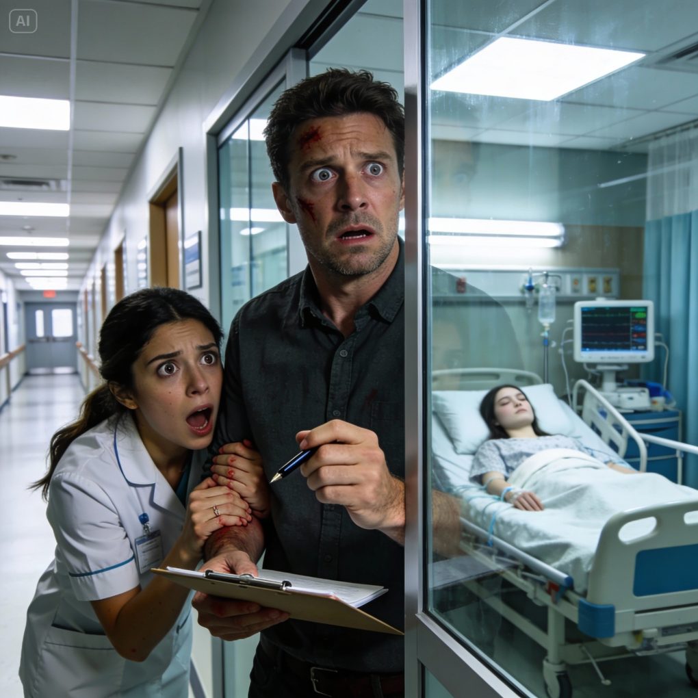 Eric remained unconscious, machines humming around him. Somewhere down the hall, a code was called, distant and urgent. Life and death, played on a loop.