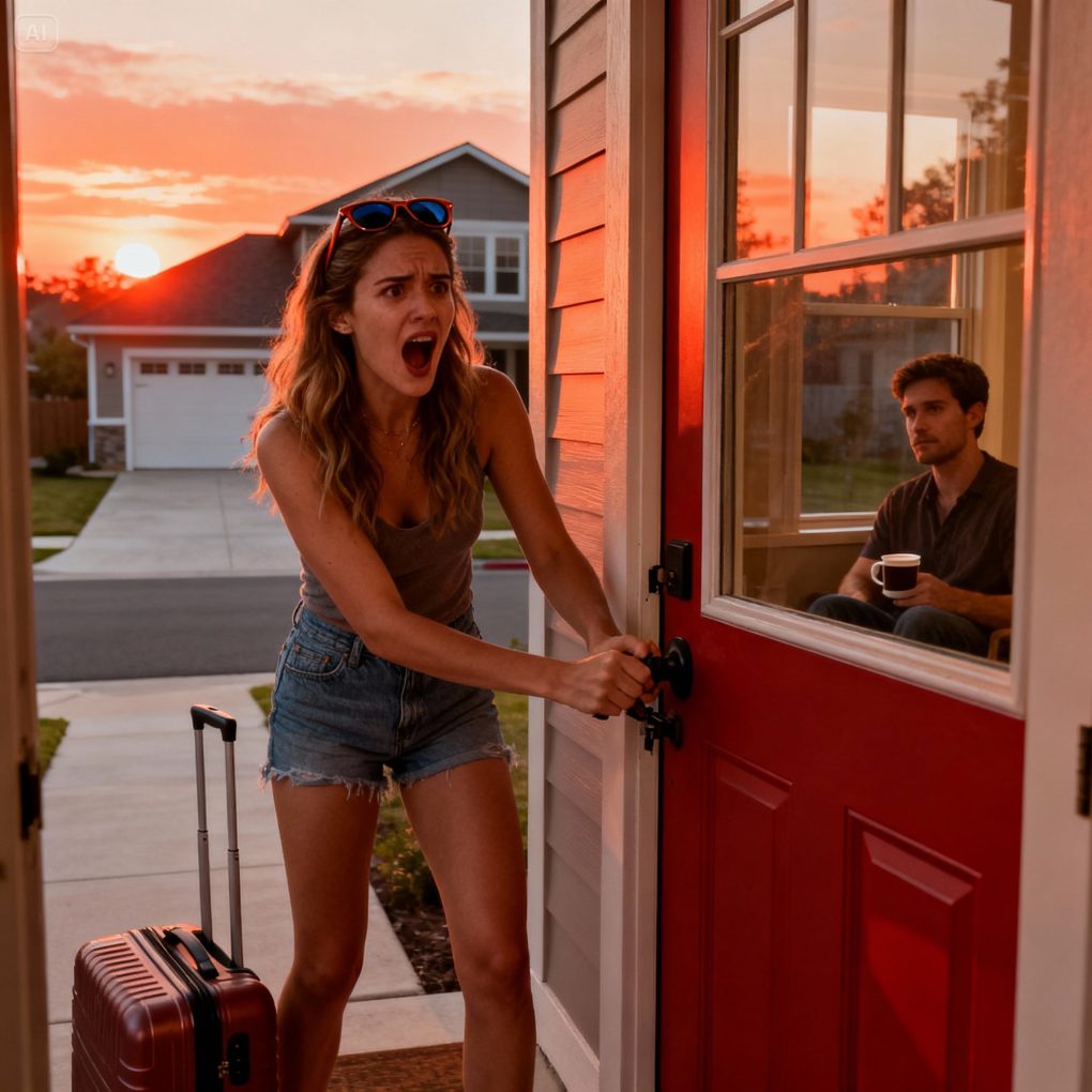 I hesitated, then cracked the door open. She stood there — sunburned, furious, mascara smudged. “You changed the locks?” she snapped.