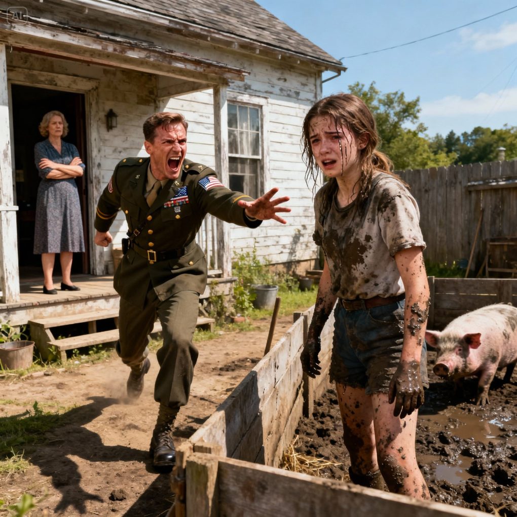 The pigs squealed and scattered as David pulled Emily into his arms. Her small body trembled, her face buried in his chest. He felt her ribs, the coldness of her skin. And at that moment, something inside him broke—something that two years of war had not destroyed.