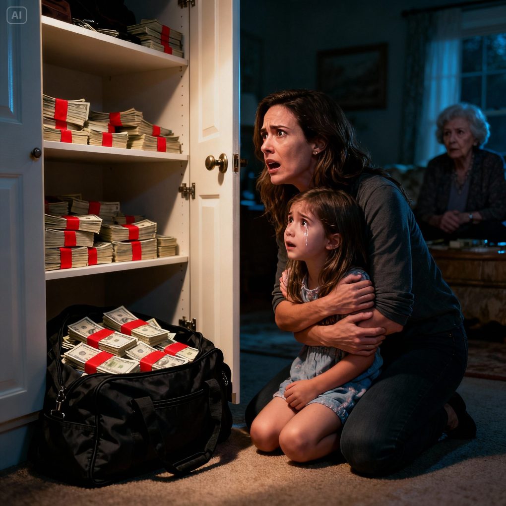 Lily hesitated, then lifted her eyes—wide, scared, and brimming with confusion. “Grandma was yelling on the phone,” she said. “She didn’t know I was in the hallway. She said someone was coming to the house at night… someone Daddy shouldn’t know about.” She swallowed. “And then I saw her hide a big bag of money in the closet.”