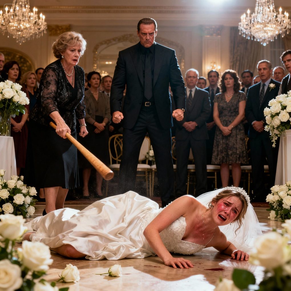 The wedding hall froze in horror when a sharp crack echoed through the air — the sound of wood striking flesh. My mother-in-law, Veronica, stood trembling with rage, clutching a long wooden stick she had grabbed from one of the decorators. And I — Emily Carter — the bride in a white gown now stained with dust, stood there, stunned, my cheek burning where she had struck me. All because I refused to hand over the dowry money she believed she was owed.